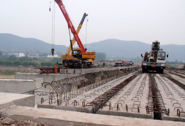 我公司2010年承建的大型市政災(zāi)后重建工程——四川省鹽亭縣梓江河橋閘工程,由兩座長270M,寬11.5M的橋梁夾一座大型水閘構(gòu)成。水閘全長202M,13孔×12M寬,采用6M×12M大型平板閘門,水閘50年一遇洪水下泄流量為7260M3/S,屬于大(I)型水閘項(xiàng)目工程。鹽亭縣梓江河橋閘工程現(xiàn)已按合同工期完工,正待驗(yàn)收,它的建成將極大地提升鹽亭縣新城區(qū)“城在水中,水邊有城” 的新景象,成為鹽亭縣城市建設(shè)一道靚麗的風(fēng)景線。