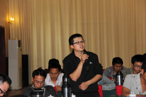董事長總經(jīng)理王元旦認(rèn)真聽取青年員工發(fā)言