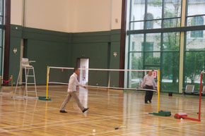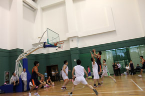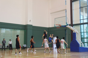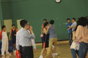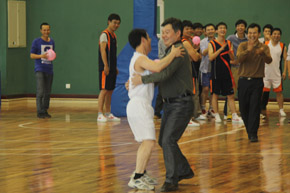 座談會結(jié)束后,大家乘車前往恒大體育館,活動的第一項內(nèi)容是公司領(lǐng)導(dǎo)和青年員工共同完成的團(tuán)隊拓展游戲——“齊腳并進(jìn)”和“心心相印”兩項接力比賽。比賽過程中,公司領(lǐng)導(dǎo)和青年員工們熱情高漲,目標(biāo)明確,心往一處想,勁往一處使,充分發(fā)揮團(tuán)隊協(xié)作精神,爭分奪秒完成各項任務(wù),布滿汗水的笑臉在燈光下熠熠生輝,加油鼓勁和歡呼祝賀聲響成一片。拓展游戲項目結(jié)束,大家還進(jìn)行了籃球友誼賽和羽毛球比賽。