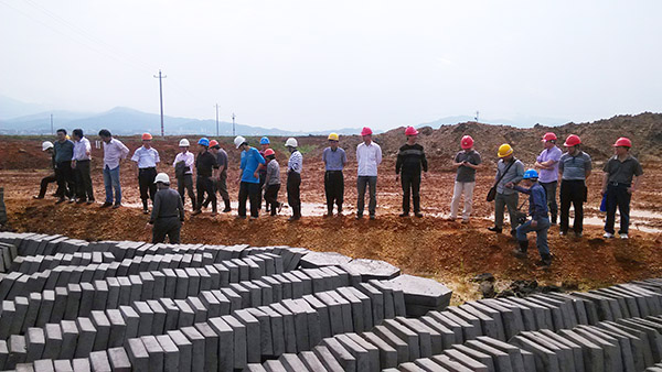 楊羅女副總指揮現(xiàn)場(chǎng)詳細(xì)了解砼生態(tài)擋墻施工工藝