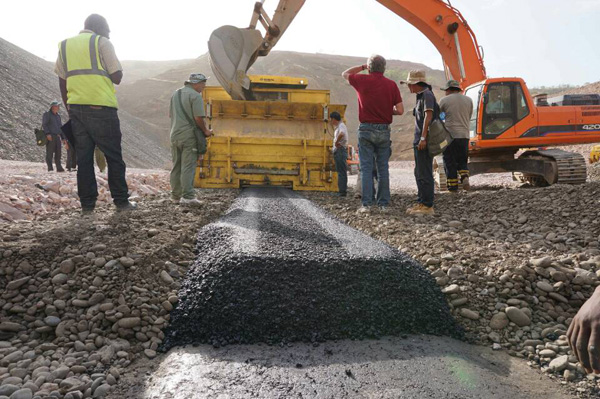 公司高度重視Wolkite瀝青混凝土芯墻的建設(shè),成立了以黃生寶為經(jīng)理的項目組領(lǐng)導(dǎo)班子,選派了一批技術(shù)過硬、經(jīng)驗豐富、善于學(xué)習(xí)的技術(shù)和操作人員,并從國內(nèi)專門聘請從事該方面工作的專家親赴現(xiàn)場進行技術(shù)指導(dǎo)和把關(guān)。在公司董事會的正確領(lǐng)導(dǎo)下,項目部全體成員緊緊圍繞著Wolkite瀝青混凝土芯墻項目全力施工。本著特事特辦的原則,國內(nèi)后勤組緊急采購發(fā)送了一大批施工設(shè)備,為項目開好頭打下了堅實的基礎(chǔ)。為了優(yōu)質(zhì)高效地完成任務(wù),項目組全體人員精誠團結(jié)、夙興夜寐,不計白天黑夜,不管分內(nèi)分外,取得的成果得到了業(yè)主和監(jiān)理的肯定。從制定施工方案和技術(shù)指標,到裝配實驗儀器和施工設(shè)備,從悶熱的室內(nèi)配合比工作,到烈日炎炎下的現(xiàn)場施工,無不凝結(jié)著大家的智慧與汗水。