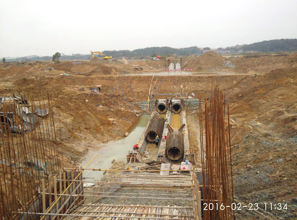 潦河灌區(qū)黃沙港倒虹吸管施工現場