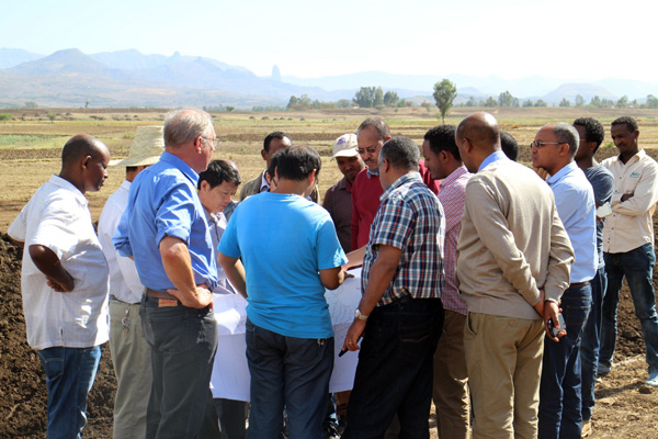 2016年3月20日,埃塞俄比亞聯(lián)邦水利能源部部長Motuma Mekesa閣下及副部長Kebede Gerba閣下帶領(lǐng)水利能源部尼羅河灌溉項目協(xié)調(diào)辦、阿姆哈拉州土地管理局、阿姆哈拉州尼羅河灌溉項目協(xié)調(diào)辦等項目各參建單位負責人到我公司承建的埃塞俄比亞Ribb一期灌溉項目視察。