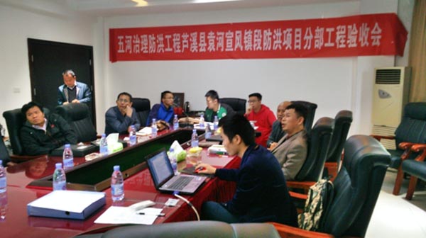 集團(tuán)資訊 2016年10月31日,我公司承建的五河治理防洪工程蘆溪縣袁河宣風(fēng)鎮(zhèn)段防洪項(xiàng)目在蘆溪縣水務(wù)局會(huì)議室主持召開了分部工程驗(yàn)收會(huì)議,分部工程驗(yàn)收工作組由江西省五河治理防洪工程項(xiàng)目部、蘆溪縣五河治理防洪工程項(xiàng)目部、江西省水利規(guī)劃設(shè)計(jì)院、江西省建洪工程監(jiān)理咨詢有限公司以及我公司等相關(guān)單位的代表組成。公司工程部郭洪有出席了此次驗(yàn)收會(huì)議。