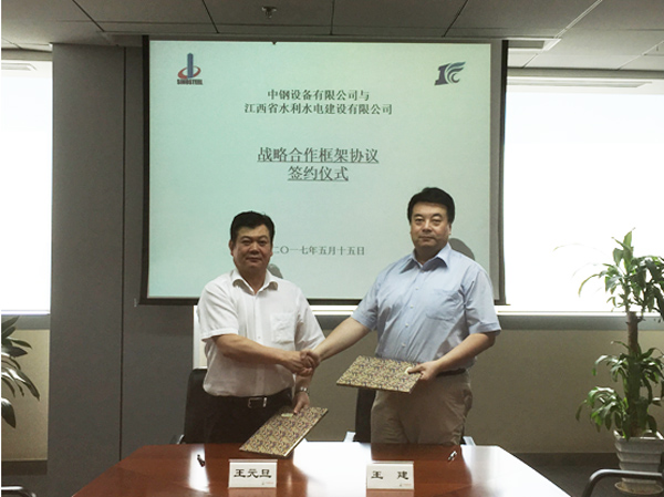 集團(tuán)資訊2017年5月15日,江西省水利水電建設(shè)有限公司與中鋼設(shè)備有限公司戰(zhàn)略合作框架協(xié)議簽約儀式在北京舉行。公司董事長(zhǎng)王元旦與中鋼設(shè)備有限公司總經(jīng)理王建代表雙方簽署了戰(zhàn)略合作框架協(xié)議。公司海外公司副總經(jīng)理熊昊冠和中鋼設(shè)備能源與基礎(chǔ)設(shè)施部副部長(zhǎng)閆永軍、國(guó)際市場(chǎng)部副部長(zhǎng)王思奇、市場(chǎng)主管姬曉軍參加簽字儀式。王建表示中鋼公司有著海外平臺(tái)優(yōu)勢(shì),江西水建擁有水利水電、房建和市政領(lǐng)域的技術(shù)優(yōu)勢(shì),希望雙方以此次戰(zhàn)略合作簽署為契機(jī),借助各自在資源、業(yè)務(wù)等方面的綜合優(yōu)勢(shì),在巴基斯坦市場(chǎng)以及其他國(guó)別市場(chǎng)攜手共進(jìn),推進(jìn)重點(diǎn)項(xiàng)目落地,共謀發(fā)展。公司董事長(zhǎng)王元旦對(duì)中鋼設(shè)備的支持表示感謝。他表示此次合作將會(huì)是一個(gè)友好的開(kāi)端,真誠(chéng)希望雙方在國(guó)家“一帶一路”戰(zhàn)略指引下進(jìn)一步加深交流,探索多方位、深層次合作,實(shí)現(xiàn)互利共贏。