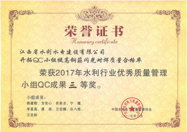 近日,中國(guó)水利電力質(zhì)量管理協(xié)會(huì)水利分會(huì)在湖南省長(zhǎng)沙市,舉辦了2017年水利行業(yè)優(yōu)秀QC小組成果發(fā)表會(huì),并在本次發(fā)表會(huì)上發(fā)布了206項(xiàng)QC成果。本次成果發(fā)表會(huì)上,我公司發(fā)表的4項(xiàng)QC成果中, 1項(xiàng)QC成果獲一等獎(jiǎng),2項(xiàng)QC成果獲二等獎(jiǎng),1項(xiàng)QC成果獲三等獎(jiǎng)。公司已連續(xù)3年獲得水利行業(yè)優(yōu)秀QC小組成果獎(jiǎng)。