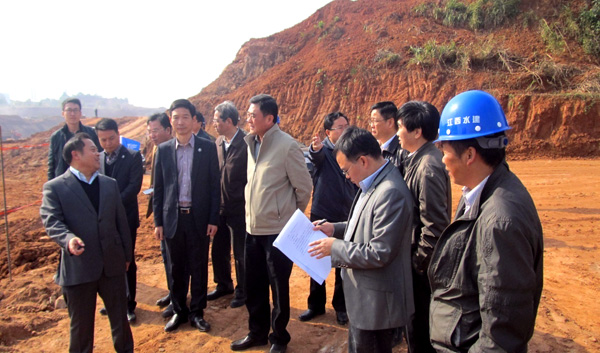 2013年11月20日,江西省萍鄉(xiāng)市市委書(shū)記陳衛(wèi)民率市委、市經(jīng)濟(jì)開(kāi)發(fā)區(qū)、建設(shè)局等有關(guān)部門(mén)負(fù)責(zé)人來(lái)到我公司承建的萍鄉(xiāng)市城市防洪應(yīng)急工程2標(biāo)分洪河項(xiàng)目檢查指導(dǎo)工作。