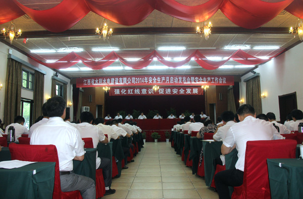 為響應(yīng)江西省水利廳《關(guān)于開展2014年水利安全生產(chǎn)月宣傳活動》精神要求,牢固樹立“以人為本”的科學(xué)發(fā)展觀,2014年6月22日,公司在南昌召開了2014年安全生產(chǎn)月啟動發(fā)布會暨安全生產(chǎn)工作會議。省水利廳黨委書記、廳長孫曉山,副廳長廖瑞釗到會指導(dǎo),公司黨委書記、董事長兼總經(jīng)理王元旦等高層領(lǐng)導(dǎo),公司中層管理人員,各專業(yè)公司、分公司及施工項目部的主要負責人、技術(shù)負責人、專職安全員共100余人參加了會議。公司黨委副書記王延軍主持會議并宣布安全生產(chǎn)月啟動。