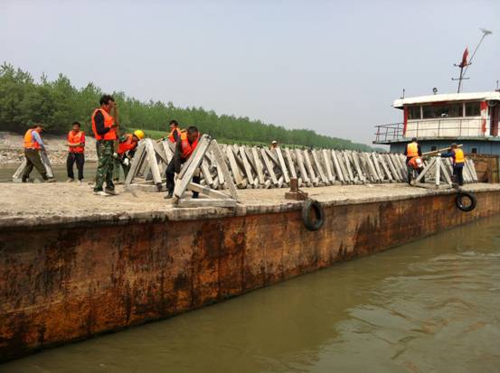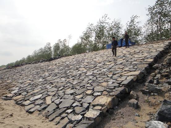 [注:九江長江江心洲固岸應(yīng)急度汛工程,包括九江縣江新洲1標和彭澤縣棉船洲1標,由我公司中標承建。工程主要建設(shè)內(nèi)容為拋石、砼四邊六面框架、干砌石護坡,項目總投資4000萬元。江新洲和棉船洲大堤共保護面積130.39 平方公里,保護耕地12.18萬畝,保護人口8.39萬人,圩區(qū)內(nèi)土地肥沃,灌溉便利,是江西省的重要棉油生產(chǎn)基地。]