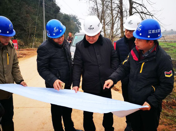 1月31日,董事長(zhǎng)王元旦率總經(jīng)理徐洪良、書記王延軍、工會(huì)主席史偉、董事會(huì)秘書劉俊視察廖坊灌區(qū)二期工程PPP項(xiàng)目。