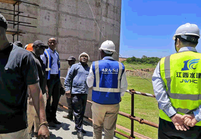 陪同總統(tǒng)參觀視察的還有公共工程部部長(zhǎng)、馬普托省省長(zhǎng)、國(guó)家水務(wù)局局長(zhǎng)等,業(yè)主代表、監(jiān)理代表、承包商代表和當(dāng)?shù)鼐用翊硪煌瑓⒓邮⒌?,莫桑比克?guó)家電視臺(tái)和主流平面媒體進(jìn)行了全程報(bào)道。