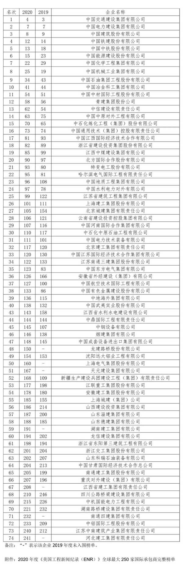 集團(tuán)資訊美國(guó)當(dāng)?shù)貢r(shí)間8月20日,2020年度美國(guó)《工程新聞紀(jì)錄(ENR)》“全球250家國(guó)際承包商”榜單發(fā)布。